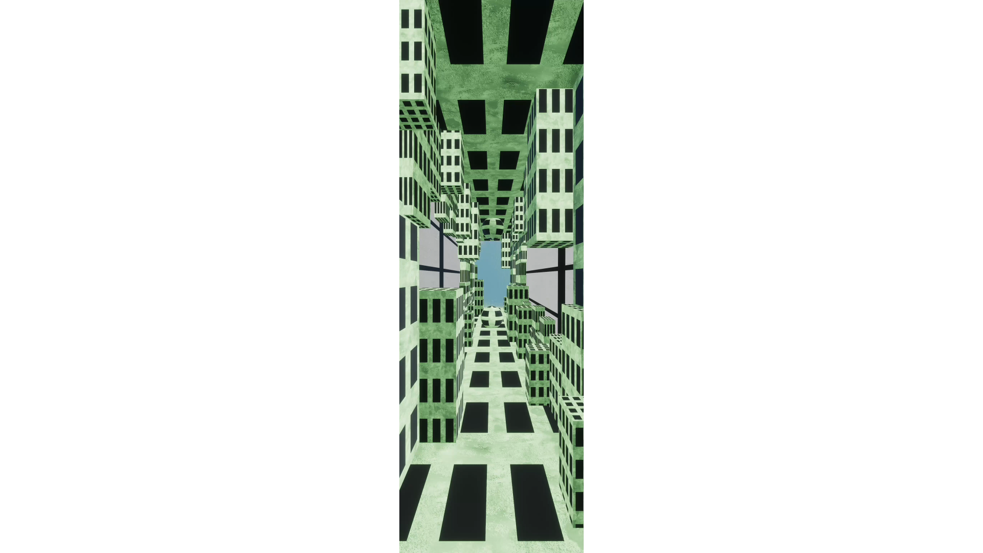The project was developed and rendered in Unity. Shader Graph was used extensively to create dynamic surface effects and continuously changing color patterns, while Cinemachine was employed to choreograph camera movement and simulate a smooth, embodied traversal through the corridor.